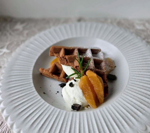 季節のフルーツをのせたシンプルなワッフル。