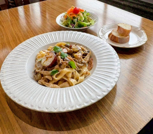 濃厚な二層のソースにペンネをからめてお召し上がりください。